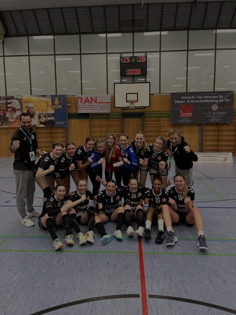 Am Samstag, 7.12.24, wurden unsere Damen 2 vom TSV Aichach empfangen. Die in der Liga ungewohnt offensive Abwehr (und das bestehende Harzverbot) beim TSV Aichach wurde im Vorfeld besprochen und das Training dementsprechend gestaltet. So konnten unsere Damen 2 gut vorbereitet in das Spiel starten. Die erste Halbzeit fand auf Augenhöhe statt, so gab es auf beiden Seiten technische Fehler, was dazu führte, dass es mit 12:12 in die Halbzeitpause ging. Das Ziel für die nächsten 30 Minuten war nun den Angriff cleverer zu spielen und sich gegen die offensive Abwehr weiterhin viel zu bewegen. Nachdem wir zwei 2-Minuten-Strafen beinahe gleichzeitig bekommen haben, konnte sich der TSV Aichach erstmals mit 2 Toren absetzen. Direkt im Anschluss hatten unsere Damen einen 3:0 Lauf, welcher uns die Führung mit 21:20 in der 48. Minute zurückbrachte. Im Folgenden Spiel bauten wir diese auf 25:28 aus und erkämpften uns den 2. wichtigen Sieg in Folge. #aufguteFreunde
